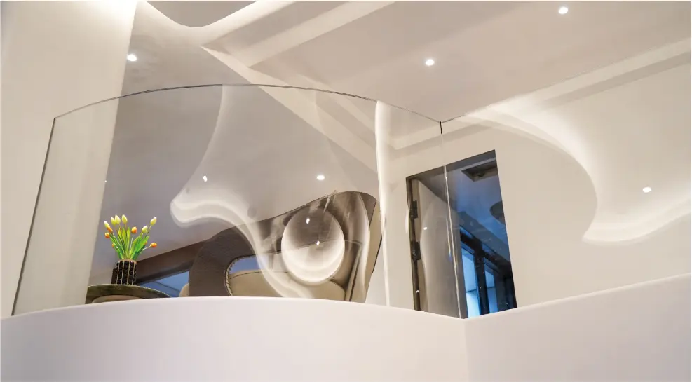 perfection. The NorthGlass’s advanced “Super Flat & Spotless” tempering technology ensures that float glass retains its original flatness and crystal-clear quality after tempering. This method virtually eliminates the common issues of distortion, strain pattern, and white haze that are often challenging to address with standard tempering processes, marking a revolutionary advancement in glass tempering technology.